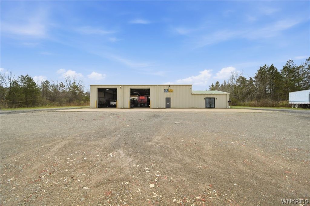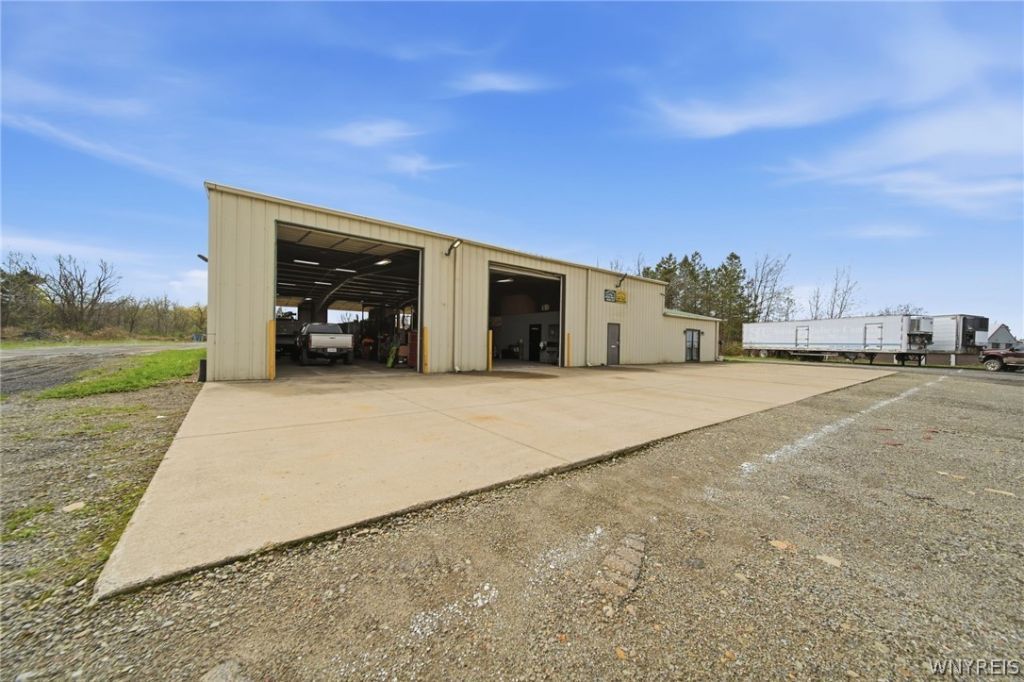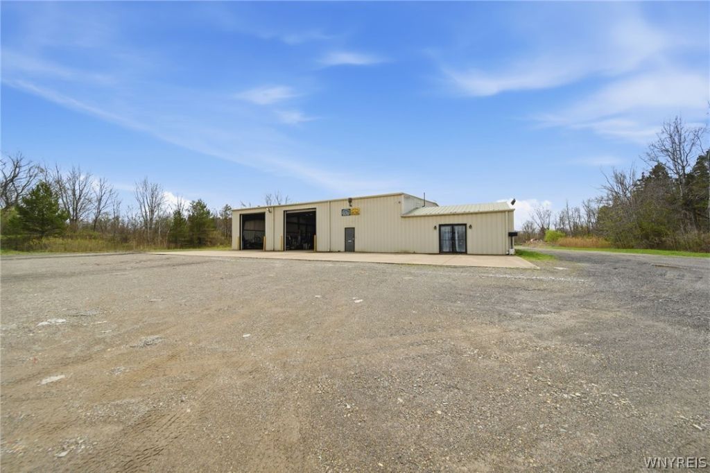 Auto / Truck Garage | 10+ Acres | For Sale or Lease Dunkirk-Fredonia Corridor | Western New York Positioned between Dunkirk and Fredonia, this well-equipped auto/truck service facility offers a rare combination of scale, functionality, and flexibility for owner-operators or investors. Situated on approximately 10 acres with 418+ feet of frontage and 1,408+ feet of depth, the property provides exceptional access, circulation, and outdoor storage capacity. Two separate curb cuts, a stone yard, and full 360-degree drive-around capability make it ideal for heavy equipment, fleet services, or logistics-based operations. The building is efficiently divided into office and warehouse components. The office area totals approximately 700+ square feet and includes private offices, two restrooms, a breakroom, and direct access to the warehouse from both the front and rear. The warehouse spans approximately 7,000 square feet (70' x 100') and is constructed with a steel beam structure designed for durability and heavy-duty use. The space features five (5) 14' x 14' overhead doors, including two drive-through bays, allowing for seamless vehicle flow and operational efficiency.