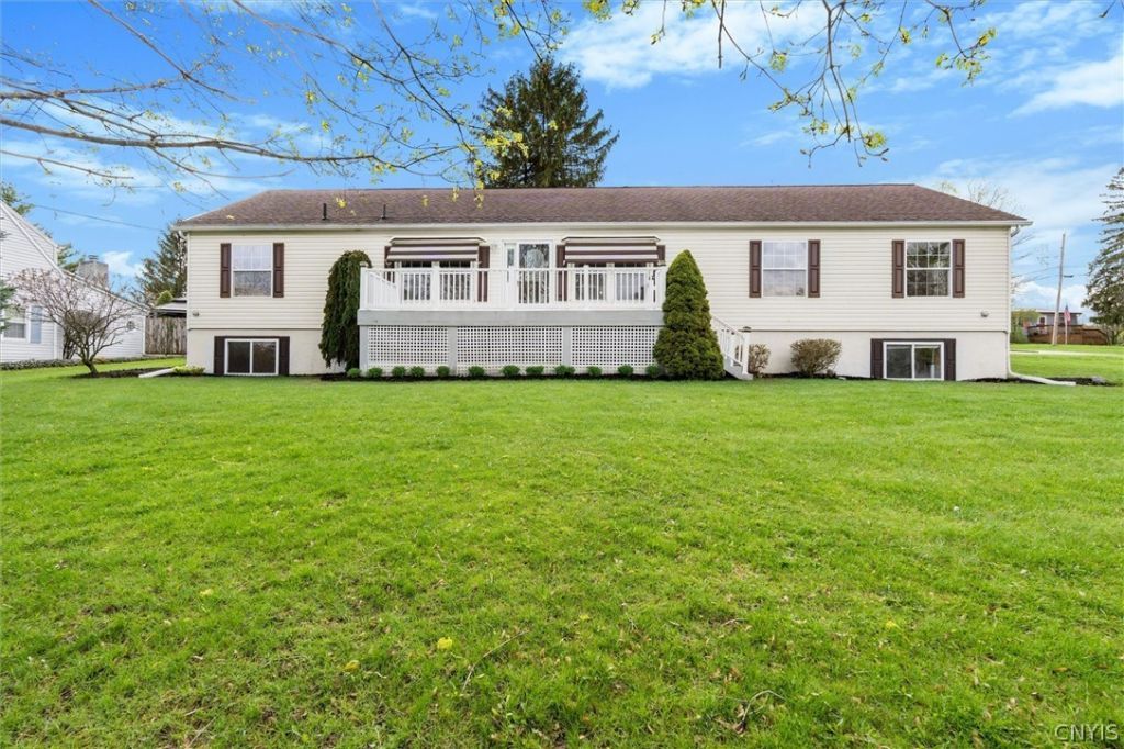 This beautiful 4-bedroom, 3-bath ranch located in the Town of Fleming offers 2,016 sq ft of living space on 1.37 acres. In the heart of the home are the kitchen, living room, and dining areas. The primary suite is located on one side and features its own ensuite bath. On the opposite side, you'll find two additional bedrooms, a full bath, and a convenient laundry/mudroom area. The home also includes a full attic with stair access. And the partially finished basement adds even more flexible living space and has an additional bedroom and full bath. Outside, you'll find an enclosed area ideal for a dog run, decks on both the front and back of the house, a shed, and plenty of space for outdoor enjoyment. There is also a 5-car garage with an upstairs loft, as well as a large driveway with plenty of room for parking.